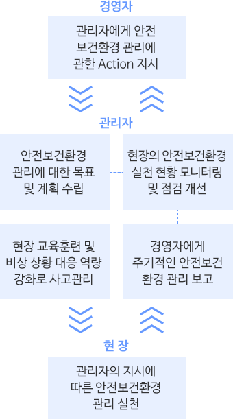 올바른 안전, 보건, 환경 경영은 인류 사회의 공헌과 기업의 성장을 돕는 중요한 핵심요소임을 인식합니다.